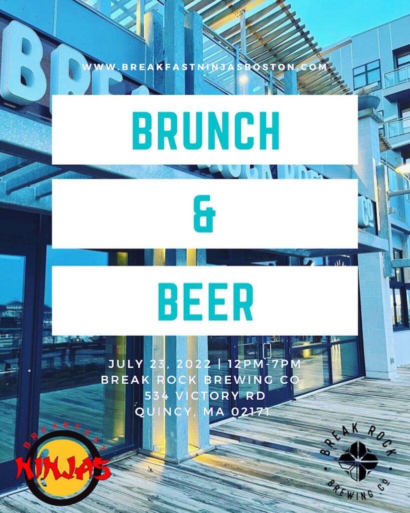 Breakfast Ninjas x Break Rock The perfect recipe for Saturday afternoon… @breakfastninjasboston gourmet spin on breakfast sandwiches, burgers, hot dogs, avocado toast & more! (Menu on our website) Plus- Beer mimosas all day: our honey wheat beer with orange juice and our hard seltzer, topped with a maraschino cherry! You don’t want to miss this 🥓