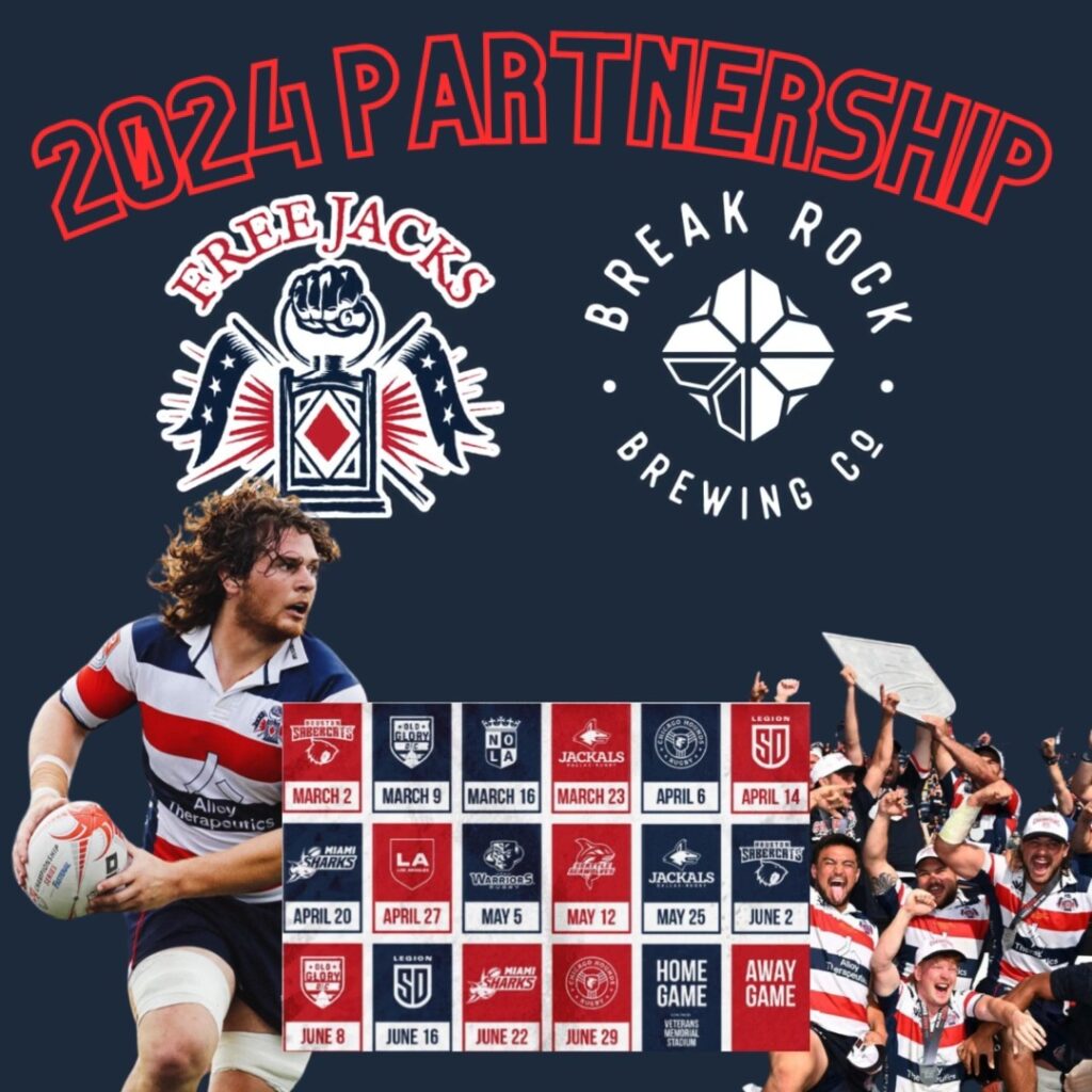We are pumped to partner with our Quincy-based friends and reigning MLR Champions, @nefreejacks for their upcoming season! You’ll be able to find your favorite Break Rock brews for sale at Veterans Memorial Stadium during the 2024 season! We’ll also be pouring at some special events throughout the year before home games. Jacks’ Fans – a reminder that we are mere MINUTES up the road from the stadium. Swing by the taproom throughout the season for your pre and post-game action! For schedule, ticket info, and more – visit freejacks.com #Quincy #quincybuilt #letsride #breakrockbrewing #freejacks #rugby #MajorLeagueRugby #drinklocalbeer #macraftbeer