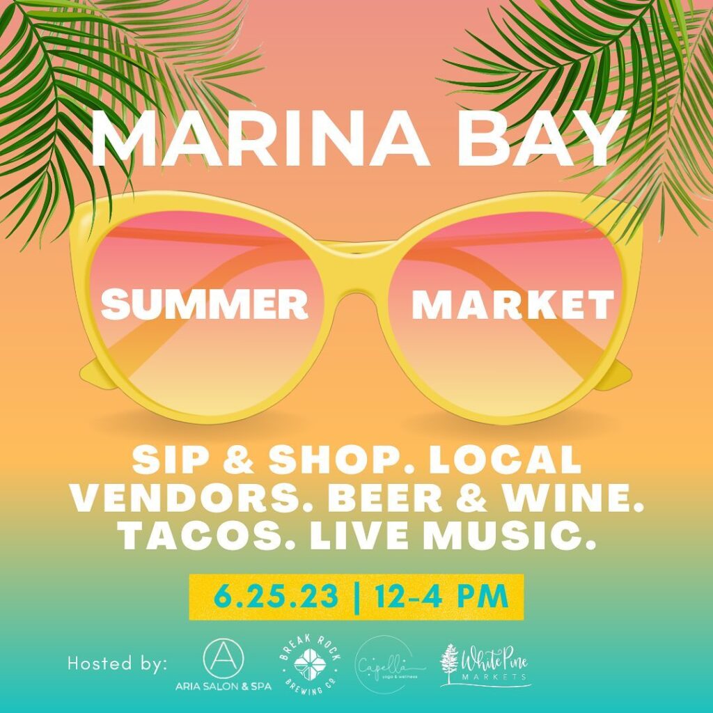 🗓️ THIS SUNDAY! Join us out on the boardwalk for a Summer Market, hosted by @white_pine_market_ ! Get excited for: A variety of amazing local vendors and artisans 🌮Food from @thiccysclub inside the taproom Live music from the Mike & Jessi duo, 1-4 PM Beer and wine to sip on while you shop! The market will take place inside and outside of @ariasalonspa @capellayoga & @breakrockbrewing We can’t wait! #summermarket #marinabay #beerandwine #sipandshop #tacos #livemusic #quincyma