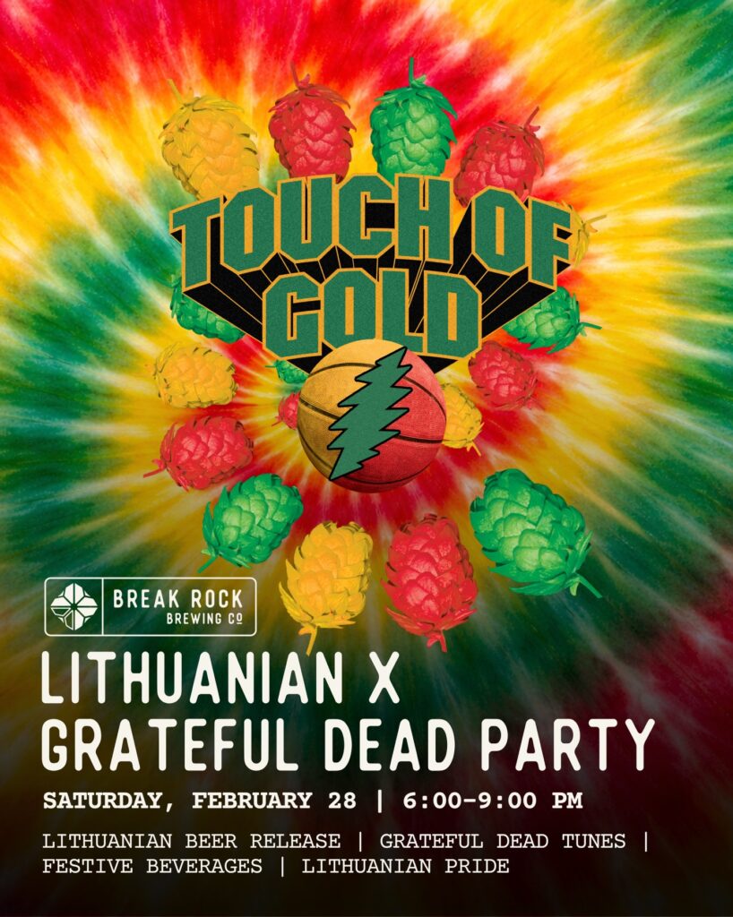 Join us for our Lithuanian × Grateful Dead Party on Saturday, February 28th from 6–9 PM at Break Rock Brewing. 🇱🇹 We’re celebrating Lithuanian heritage, Boston’s vibrant Lithuanian community, and a legendary moment in sports and music history with the release of Touch of Gold — our Lithuanian Golden Pale Ale, pouring on draft and available to go. The event honors the iconic story of the Grateful Dead sponsoring Lithuania’s 1996 Olympic basketball team — a symbol of pride, resilience, and global support. Expect Dead tunes from @waysidesound, pre-ordering Touch of Gold tees, festive Lithuanian-inspired beverages, and hot food from Sandwich Boy. Wear your Grateful Dead gear — and if you’re lucky enough to have one, your original 1992 Lithuanian Grateful Dead basketball shirt. Come celebrate culture, music, and community seaside at Break Rock Brewing! #bostonma #gratefuldead #lithuania #lithuanian #bostonbeer