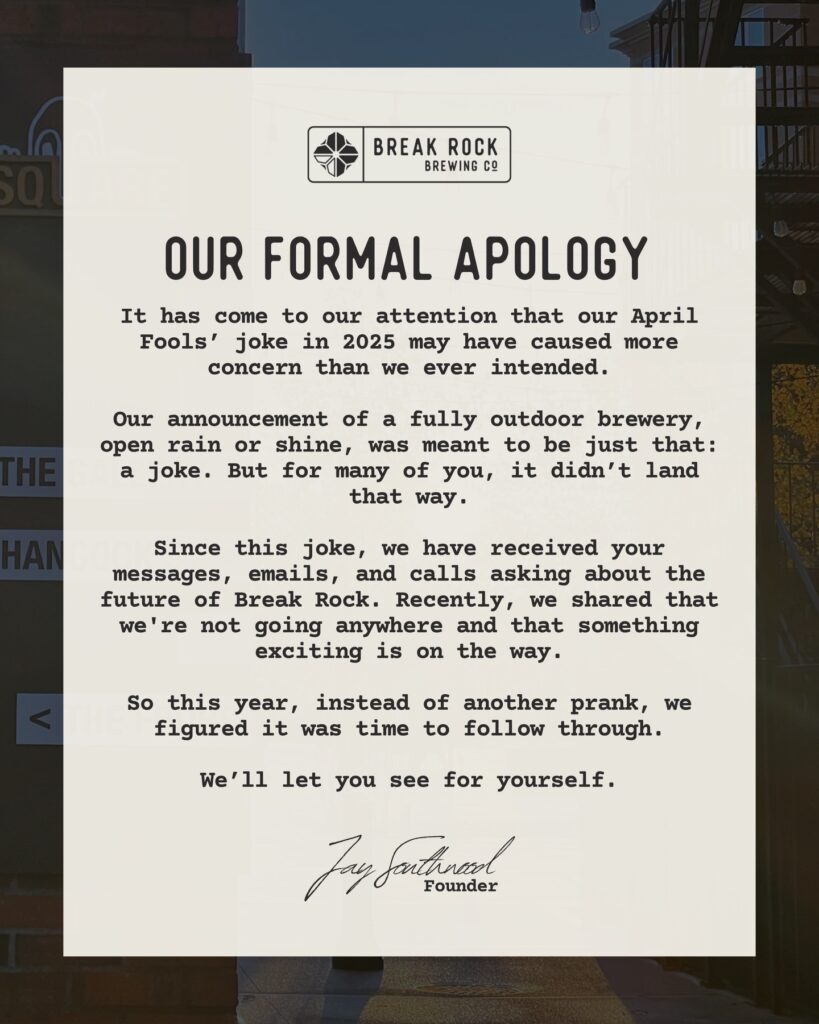 We didn’t have the heart to prank you again this April 1st. After last year, we figured it was time to follow through on something real. Coming Spring 2026, we’re bringing Break Rock to Quincy Center with the Kilroy Square Beer Garden brought to you by @thequincychamber. #quincyma #quincycenter