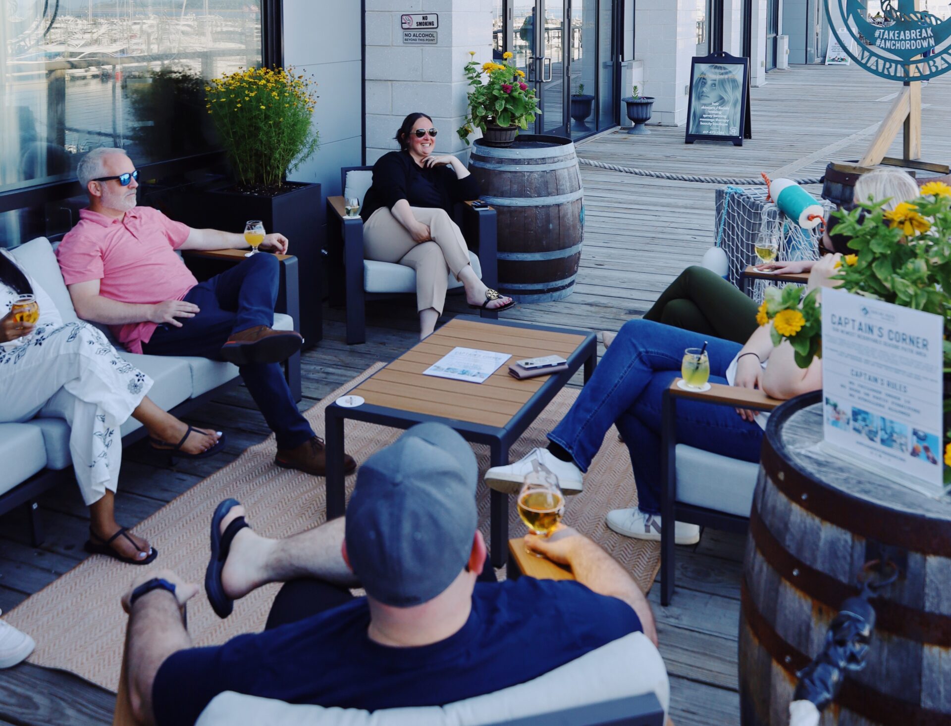 Captain’s Corner is Break Rock Brewing’s reserved seaside lounge—your private front-row seat to the marina. Designed for small gatherings of up to 7 guests, this relaxed and scenic nook is perfect for catching up with friends, celebrating with family, or simply soaking in the waterfront views with a beer in hand. Reservations are available in 1- to 5-hour blocks and require a minimum group spend through the bar, which includes dedicated seating and service.