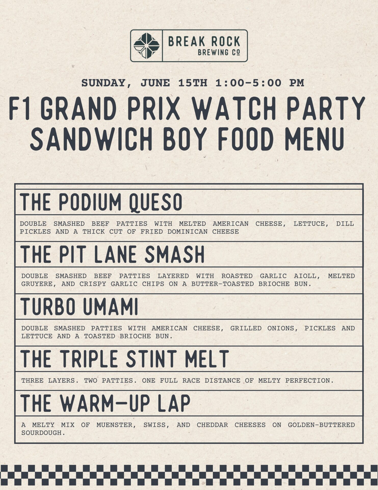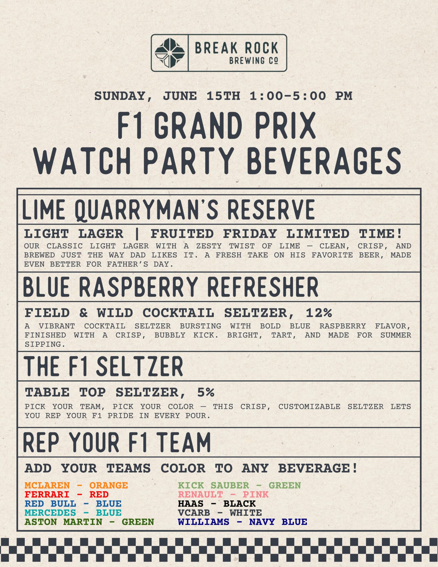 🏁 F1 Grand Prix Viewing Party | Father’s Day at Break Rock Brewing