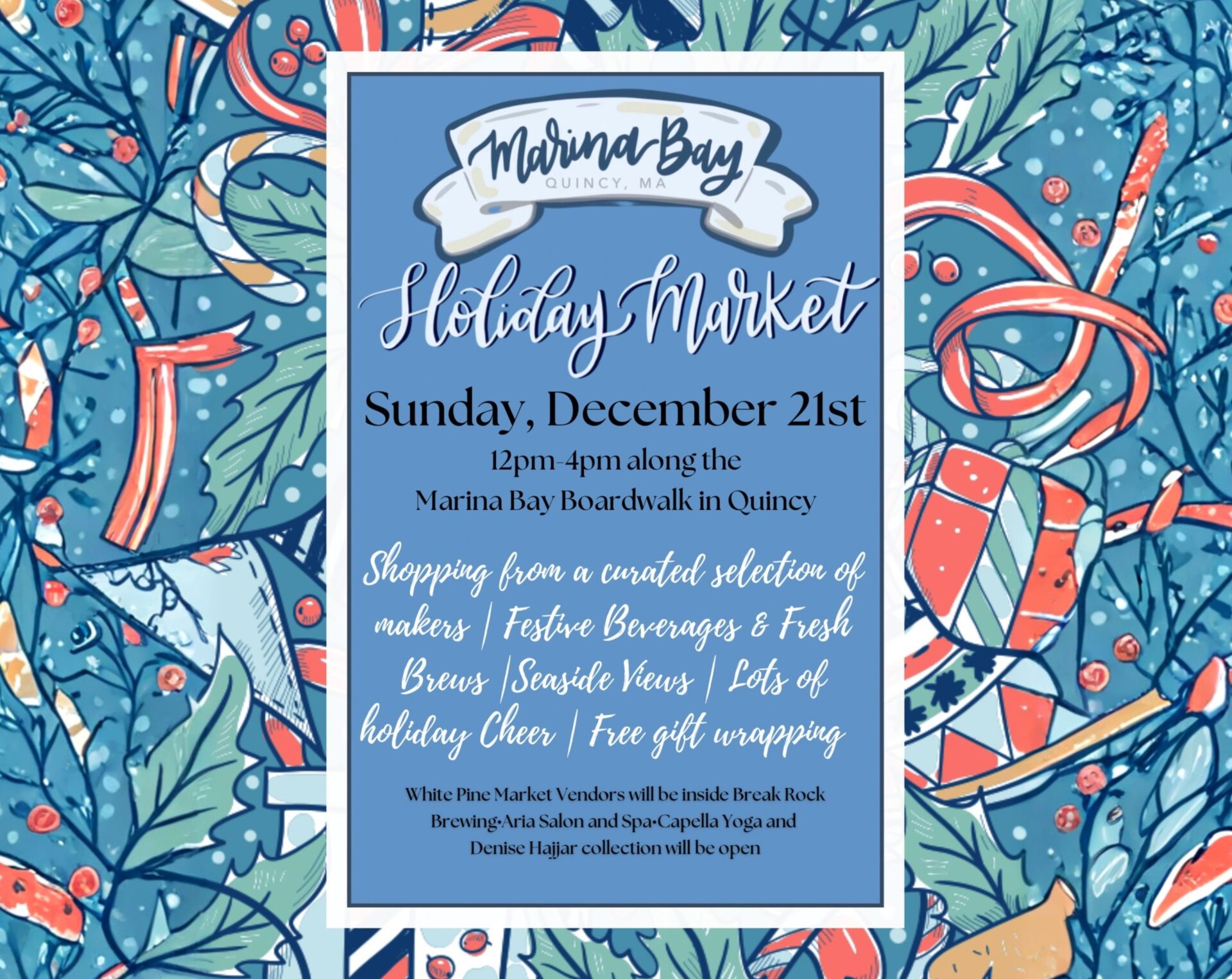Join us on Sunday, December 21st from 12–4pm for the most magical seaside shopping day of the season! Stroll the Marina Bay Boardwalk in Quincy and enjoy: