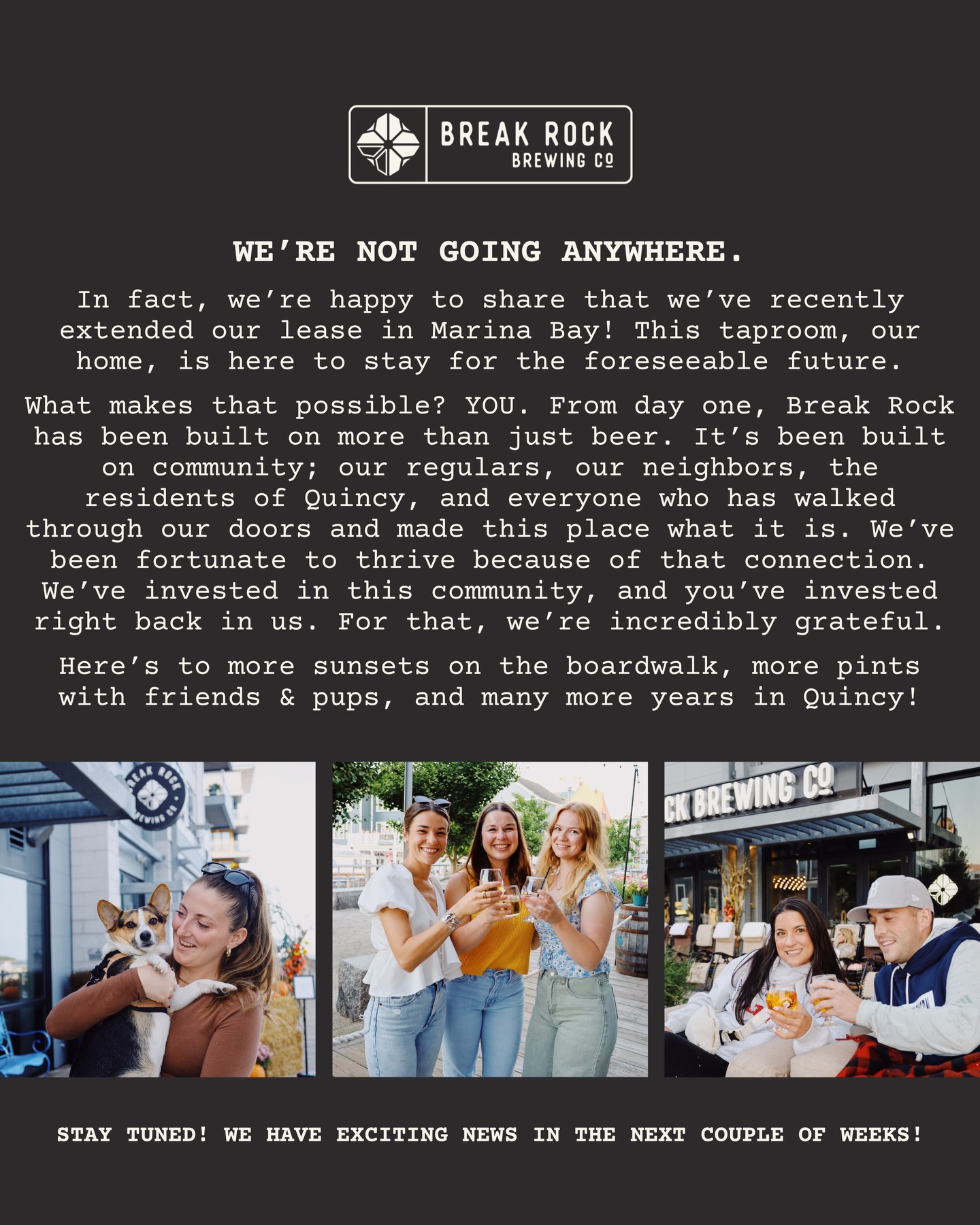 Break Rock Brewing is a waterfront brewery and taproom located in Marina Bay, Quincy, MA. A place for everyone from the local sports fan to the experienced craft beer aficionado, offering world-class beer in a laid-back environment. Break Rock combines the best of the modern taproom with everything you love about your favorite neighborhood pub – a fun and inviting atmosphere, a sense of community, and great beer!